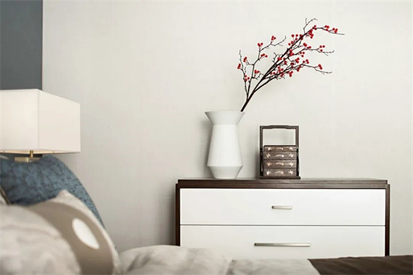 长辈房的色调比较朴素淡雅,以浅灰色为主,优雅中增添了几分清新灵动之气。艺术挂画搭配花瓶绿植更增加了对自然、平静和舒适的追求,造一个舒适轻松的休息空间。